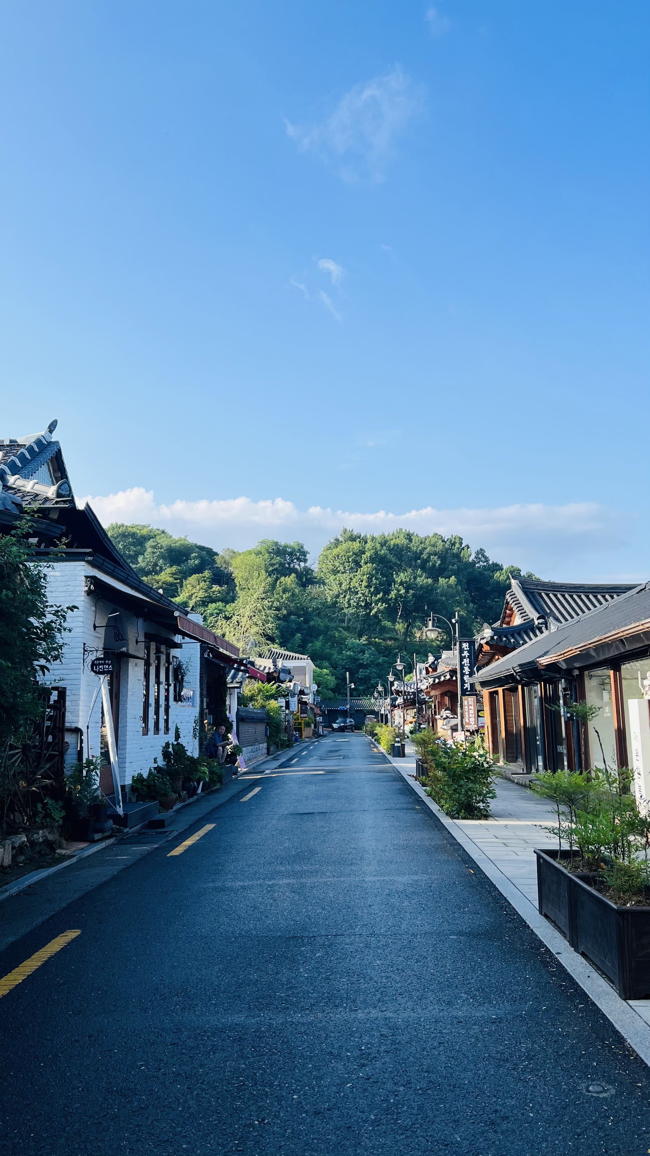 Làng cổ Jeonju thực sự rất thanh bình, sau khi gửi hành lý thì chúng tôi đi ăn Bibimbap, theo chỉ dẫn trên Naverthì chúng tôi cũng tìm được nhà hàng mà người Hàn hay ăn nhất. Nơi đây được gọi là quê hương của Bibimbap, nhưng cảm nhận của tôi là ăn cũng bình thường, 1 suất rẻ nhất là 14kw, ko hề rẻ, ăn ở Seoul còn ngon và rẻ hơn. Lúc chúng tôi đến Jeonju thì trơi mưa khá nặng hạt, ăn trưa xong thì tạnh nhưng đi lòng vòng 1 lúc là lại mưa, cảm giác bước dưới những tán cây ngân hạnh trong mưa cũng khá thú vị, dù rằng hơi bẩn 1 chút. Trong làng cổ có rất nhiều quán café, chúng tôi ghé vào 1 quán ngồi uống nước chờ mưa tạnh, ngắm nhìn những người qua lại mặc hanbok đi chụp ảnh, phải công nhận rằng họ chịu khó thật, mưa gió như vậy nhưng vẫn ra sức tạo dáng đủ kiểu để có những bức ảnh đẹp dưới mưa. Tạnh mưa, trời hửng nắng, lúc này tôi mới cảm nhận được không khí trong lành nơi này, thực sự rất thích. Làng cổ khá nhỏ nên đi 1 hồi là chúng tôi có thể đi hết những nơi cần đi rồi. Omokdae & Imokdae là nơi cao nhất ở đây, từ trên đó chúng tôi có thể ngắm nhìn toàn cảnh làng cổ. Người Hàn lên đây đa phần đều nằm dài ra nói chuyện, tôi cũng bắt chước họ, 1 phần lý do là vì cái lưng của tôi không thể chịu nổi nữa rồi, nếu không nằm ra để giãn lưng thì chắc tôi chả còn sức mà lết về chỗ nghỉ nữa. Trước khi về nhận phòng thì chúng tôi ghé qua đền Gyeonggijeon, nơi này ban đầu là nơi ở của vị vua đầu tiên triều đại Jeonson, cũng là nơi bắt đầu của triều đại lâu đời nhất trong lịch sử Hàn Quốc, trong đền vẫn còn lưu giữ bức tranh về ông. Nếu đến vào mùa thu, các cây ngân hạnh đã chuyển lá vàng thì sẽ tuyệt đẹp vô cùng, nhưng đi vào mùa hè cũng có cái hay của nó, ngắm nhìn màu xanh mướt của lá cũng rất thích.