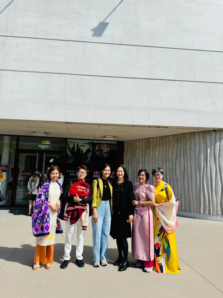 Mất 20p đi tàu, chúng tôi đã đến được Antibes, theo như thông báo thì buổi lễ sẽ diễn ra ở nhà hát Anthea, nó chỉ cách ga tàu khoảng 6p đi bộ, rất tiện. Để chuẩn bị cho buổi lễ này, chúng tôi đã chọn mặc áo dài, còn gì tự hào hơn là mặc áo dài lên sân khấu, để cho mọi người đều có thể nhận ra chúng tôi đến từ Việt Nam chứ, mỗi tội là khi lên sân khấu thì chúng tôi mặc bộ áo choàng thạc sĩ. Đến nhà hát, rất đông người đang đứng chờ phía ngoài, đủ mọi màu da, quốc tịch, tâm trạng ai cũng vui vẻ, háo hức. Người phụ trách đón chúng tôi là Ms. Lan, lúc đầu nghe tên chúng tôi tưởng cô là người Việt, nhưng hóa ra cô là người Pháp gốc Hoa, cô hướng dẫn chúng tôi phải làm gì, đi chỗ nào, tủ gửi đồ ở đâu… sau đó cô chụp cùng chúng tôi vài bức ảnh trước cửa nhà hát.