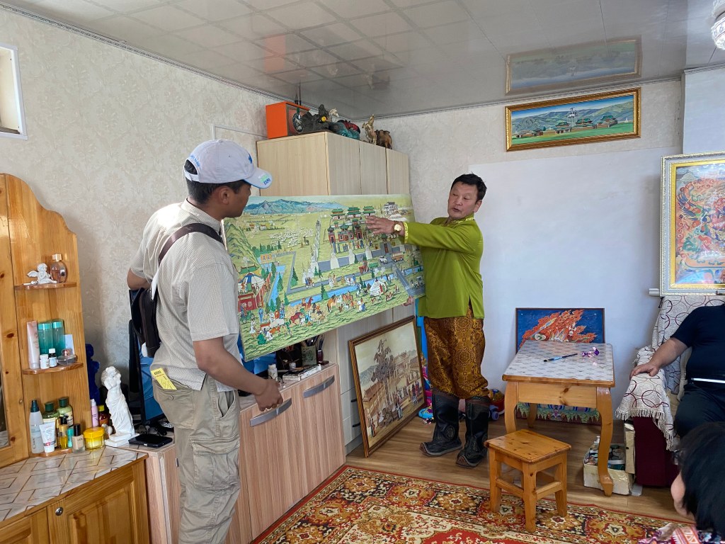 Điều đặc biệt của chuyến đi ngày hôm nay là chúng tôi sẽ đến thăm nhà Batmunkh, chính xác hơn là nhà vợ của cậu ấy. Batmunkh sống và làm việc ở Ulaanbaator, nhưng vợ con thì sống với bố mẹ vợ ở đây. Tôi bảo với Phương Anh “thế hôm nay Batmunkh sẽ ngủ lại ở nhà chứ không đi cùng chúng ta đúng không?”, Phương Anh bảo rằng em ý đã bảo cậu ấy cứ ở lại nhà với vợ đi nhưng cậu ấy từ chối, không thể bỏ mặc khách được. Ngôi nhà của gia đình cậu ấy chỉ có 1 tầng, nhưng rất rộng, khi chúng tôi vừa dừng ngoài cổng, mọi người trong nhà đã đứng sẵn chờ để chào đón chúng tôi. Con trai lớn của Batmunkh rất giống bố, còn em bé nhỏ thì giống mẹ nhiều hơn, bố vợ Batmunkh là 1 họa sĩ vẽ tranh rất nổi tiếng, ông chuyên vẽ tranh Phật, và các bức tranh của ông được treo rất nhiều ở khắp các đền chùa ở Mông Cổ, những bức tranh mới mà chúng tôi thấy ở trong tu viện Erdenezuu vừa nãy cũng do chính ông vẽ. Chúng tôi còn sốc hơn khi biết 1 bức tranh ông vẽ rẻ nhất cũng có giá lên đến cả tỷ đồng, tôi bảo Batmunkh ”mày ở nhà bán tranh cho bố vợ thôi cũng thừa tiền rồi cần gì đi làm nữa”. Rời khỏi nhà Batmunkh, chúng tôi chụp cùng cả gia đình 1 bức ảnh kỷ niệm, con trai Batmunkh rất lưu luyến bố, không muốn xa bố, nhìn thằng bé rơm rớm nước mắt mà thấy tội tội.