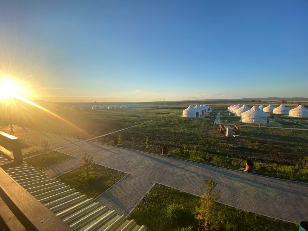 Trong mỗi ger đều có nhà vệ sinh riêng, 2 giường khá lớn, có cả giá để đồ, bàn ghế và ổ điện đầy đủ, nhìn đồng hồ lúc này là 7h tối mà mặt trời vẫn cứ chói chang, em gái tôi liền đặt máy set timelapse, quyết canh được hoàng hôn trên thảo nguyên. 8h ăn tối, chúng tôi đi vào nhà hàng ở trong 1 tòa nhà lớn giữa resort, lần đầu tiên tôi ăn tối mà phải đeo kính râm vì ánh nắng chói chang hắt qua kính chiếu thẳng vào bàn chúng tôi ngồi. Bữa tối hôm nay là beefsteak, được làm từ thịt bò Yak, thật may là ở đây người ta khử mùi nên tôi có thể ăn được, chứ không khử mùi thì chịu chết. Bữa tối hôm nay rất đặc biệt, bởi vì ngày hôm nay là sinh nhật tôi và cô Hương đi cùng đoàn. Batmunkh và Phương Anh đã bí mật đặt resort 1 chiếc bánh sinh nhật, khi ăn tối xong, nhân viên đem bánh ra, tất cả cùng hát chúc mừng sinh nhật 2 cô cháu, 1 sinh nhật thật đặc biệt và đáng nhớ. 10h, chị em tôi trở về ger, bắt đầu có dấu hiệu của hoàng hôn, em gái tôi rất háo hức vì có thể bắt được khoảnh khắc hoàng hôn trên thảo nguyên, tôi tranh thủ đi tắm thì phát hiện ra hệ thống nước nóng có vấn đề. Hì hục chạy đi tìm nhân viên để báo hỏng, chờ 30p mới có nhân viên đến sửa, khu này rộng quá cũng là vấn đề, tìm người rồi đi đi lại lại cũng hết cả hơi.