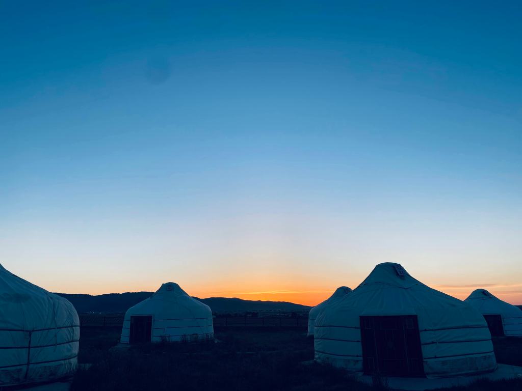 Khi mặt trời lặn thì cũng là lúc nhiệt độ càng lúc càng hạ thấp, buổi đêm trên thảo nguyên nhiệt độ không quá 10 độ, thật may là trong ger có sẵn máy sưởi chứ không thì chị em tôi chết cóng. Ngủ 1 giấc thật sâu, sáng sớm 5h tôi đã tỉnh như mọi khi, nhưng tỉnh là vì nghe thấy tiếng đọc thơ bên ngoài. “Bình minh ơi xin hãy gọi tôi dậy…”, ôi mẹ ơi, ở gần ger của tôi là ger của Phương Anh, em ý ở chung với em Trâm và cô Hiền, 1 cựu giáo viên dạy Văn; và cô Hiền là người đang đi thơ thẩn khắp resort, vừa đi vừa đọc thơ và quay phim. Sau khi nghe đến lượt thứ 10 của cái bình minh ơi thì tôi đành bò dậy, chứ muốn ngủ cũng không ngủ nổi với cái giọng thơ lên bổng xuống trầm đó, nếu chỉ 1,2 lần thôi thì còn đỡ, chứ đến chục lần thì thật đáng sợ. Đi ra ngoài, trời đã nắng to, nhưng vẫn rất lạnh, tôi đi loanh quanh để tận hưởng không khí trong lành buổi sáng, gặp 2 cô Nga cũng đang đi bộ, 2 cô hỏi có phải tôi đọc thơ lúc nãy không, hóa ra 2 cô cũng bị cái giọng thơ truyền cảm của cô Hiền đánh thức.