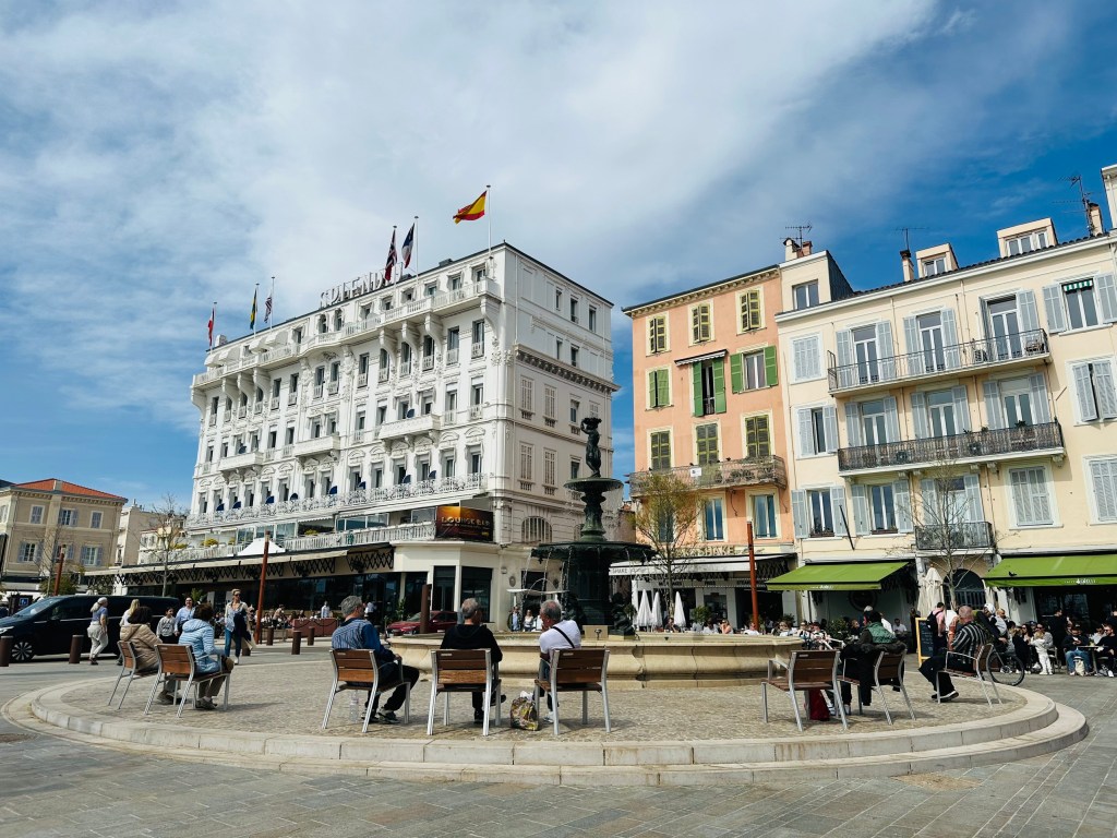 Thứ 7, ngày 23/3 là 1 ngày đặc biệt với chúng tôi, vì nó là lí do để chúng tôi có cơ hội đặt chân đến nơi này. Buổi sáng chúng tôi khá rảnh vì không có lịch trình gì đặc biệt, vậy nên mọi người có thể ngủ dậy muộn chút, tắm rửa, ăn sáng, thay đồ, ra ban công chụp ảnh. Phải nói là tôi rất mê cái view từ ban công, nhìn xuống đường, đón ánh bình minh rất tuyệt, nhưng tính ra 4 ngày ở đây, tôi chỉ ra ban công chụp ảnh được khoảng 2 phút, còn lại mỗi lần ra ban công đều chỉ để phơi hoặc rút quần áo mà thôi. Chúng tôi thong dong đi bộ ra biển, theo bản đồ thì chỉ cần đi bộ khoảng 20p là đến, chúng tôi có thể ngắm nhìn buổi sáng cuối tuần ở nơi này, bình yên đến dễ chịu, lác đác vài cửa hàng bắt đầu mở, những người đạp xe, đi tập thể dục, rồi những cặp đôi thong dong ngồi tận hưởng tách café buổi sáng… Ra biển, gió khá lạnh với chúng tôi, nhưng với người dân ở đây thì ấm, dưới biển có lác đác vài người tắm biển. Chúng tôi cũng được bổ mắt khi chứng kiến các cô gái cởi áo ra, chỉ mặc mỗi cái quần bikini nhỏ xíu đi tắm biển, cơ mà ngực hơi bị bé, lại còn chảy xệ, tôi xin phép chê! Thật ra thì với người ta thì những cái này là bình thường, tôi nhớ ở Pháp có 2 bãi tắm nude nổi tiếng là Plage de Tahiti và Cap d’Agde, đến đó thì có mà còn được bổ mắt nữa, nhưng mà muốn đến đó thì cũng phải như người ta thì mới được vào, chịu thôi. Ở Hà Nội thì có thể ra bãi sông Hồng, nhưng mà ở đó toàn các ông già, đau mắt hơn là bổ mắt. Chúng tôi đi bộ 1 lúc thì quyết định vào 1 quán café có view nhìn ra biển, tôi rất thích uống rượu cũng như các loại cocktail, nhưng mới sáng ra mà uống thì sợ chiều lại bay bay quá, tôi chọn cho mình 1 ly Mocktail vị dứa nhẹ nhàng, nó hơi ngọt và quá nhiều đá, tôi uống mà buốt hết răng. Em trai Đinh chọn 1 ly martini pha với chocolate, uống khá ngon, tôi cũng lại âm thầm note vào để có dịp sẽ thử, ngay trong khu nhà tôi có quán pub mới mở, tôi nhớ trong menu cũng có món này. Ngồi uống, ngắm đường phố, ngắm biển, đón nắng chán chê, chúng tôi nhìn đồng hồ cũng hơn 10h rồi, phải đi về để còn chuẩn bị cho buổi lễ chiều nay ở Antibes. Đường về của chúng tôi là đi xuyên qua khu phố cổ, cảm giác như mình thành nhân vật chính trong những bộ phim Âu Mỹ vậy, như trong phim “Emily ở Paris” có cảnh nữ chính đi bộ trên con đường Rue de l’Abreuvoir tuyệt đẹp, thì ở đây tôi cũng có cảm giác mình đang lạc lối như vậy, ngắm nhìn những ngôi nhà phủ dây thường xuân, mùi bánh mì mới nướng thơm phức, bước trên những con đường đá cuội…