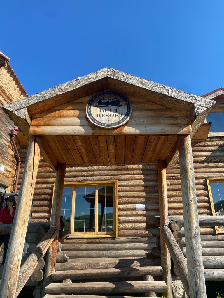 Đến giữa trưa chúng tôi mới tới nơi, suối nước nóng Tsenkher, bước xuống xe là 1 mùi ngái ngái bốc lên, hóa ra chúng tôi đang đứng rất gần khu chăn nuôi ngựa nên đang được tận hưởng mùi vị từ chuồng ngựa. Có nhân viên mang xe đẩy ra để đẩy hành lý cho chúng tôi, từ chỗ đỗ xe đi vào trong cũng gập ghềnh vì đường toàn sỏi đá tự nhiên, mọi người đều mệt và đói, chúng tôi vào luôn nhà hàng để ăn trưa. Họ đã dọn sẵn các món ăn lên cho chúng tôi, tất cả đều là món ăn của Nga, do nơi này cực kỳ gần với biên giới Nga, nói chung là đồ ăn rất ngon, trừ việc là rất nhiều vị bơ sữa siêu ngậy, thật sự là 1 thử thách với tôi trong việc lấp đầy dạ dày. Ăn xong, trong lúc chờ được nhận ger thì chị em tôi đi lang thang ngắm nghía xung quanh. Khu này cũng rất rộng, và còn đang xây thêm, ngay đằng sau là 1 cánh rừng nhưng đang bị chặt bớt, rất nhiều máy xúc, cần cẩu hoạt động liên tục. Đây là khu suối nước nóng, có rất nhiều du khách ở đây, các gia đình bản địa có điều kiện cũng đến đây nghỉ dưỡng, họ nằm dài ra phơi nắng, trẻ con thì bơi lội ở các bể nước nóng. Có 1 điều tôi phải công nhận là dân Mông Cổ cực kỳ trắng, có lẽ do khí hậu khô và đến ¾ thời gian trong năm là tuyết phủ đã làm nên 1 làn da trắng như vậy, và họ có có vẻ giống người Âu Mỹ, rất thích tắm nắng để có được 1 làn da nâu khỏe mạnh.